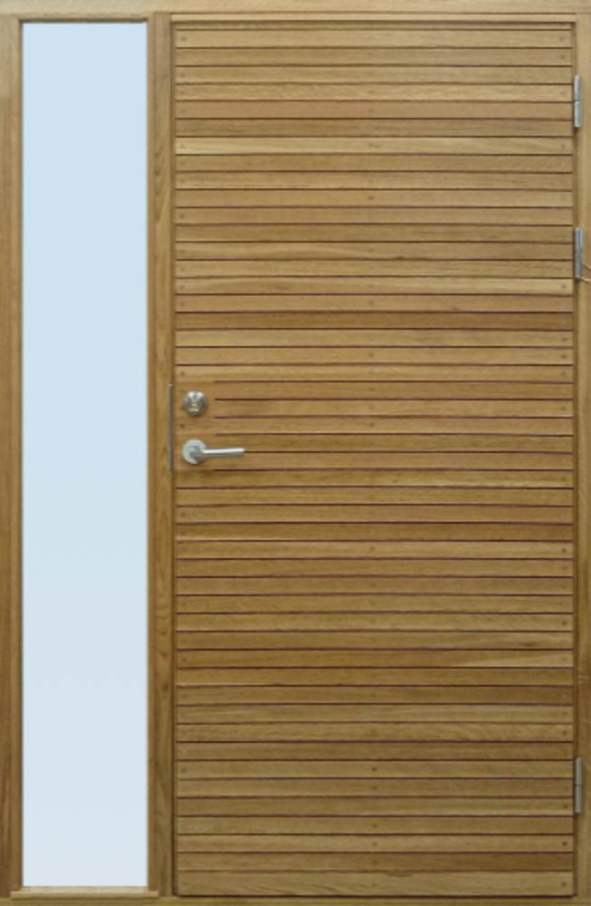 ytterdörr med sidofönster i ek